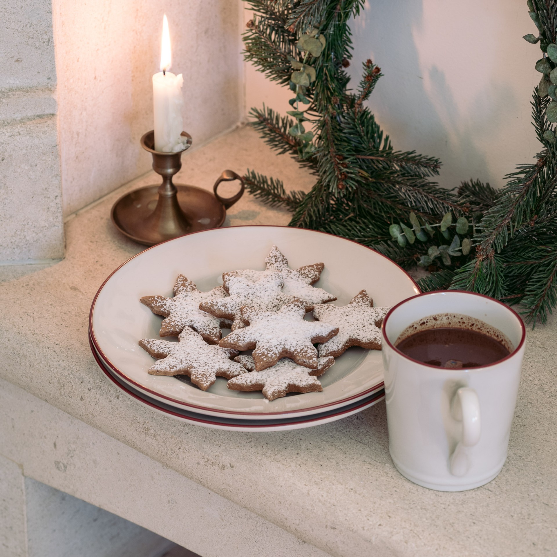– Käsinmaalattu reunus, joka antaa nostalgisen säväyksen.