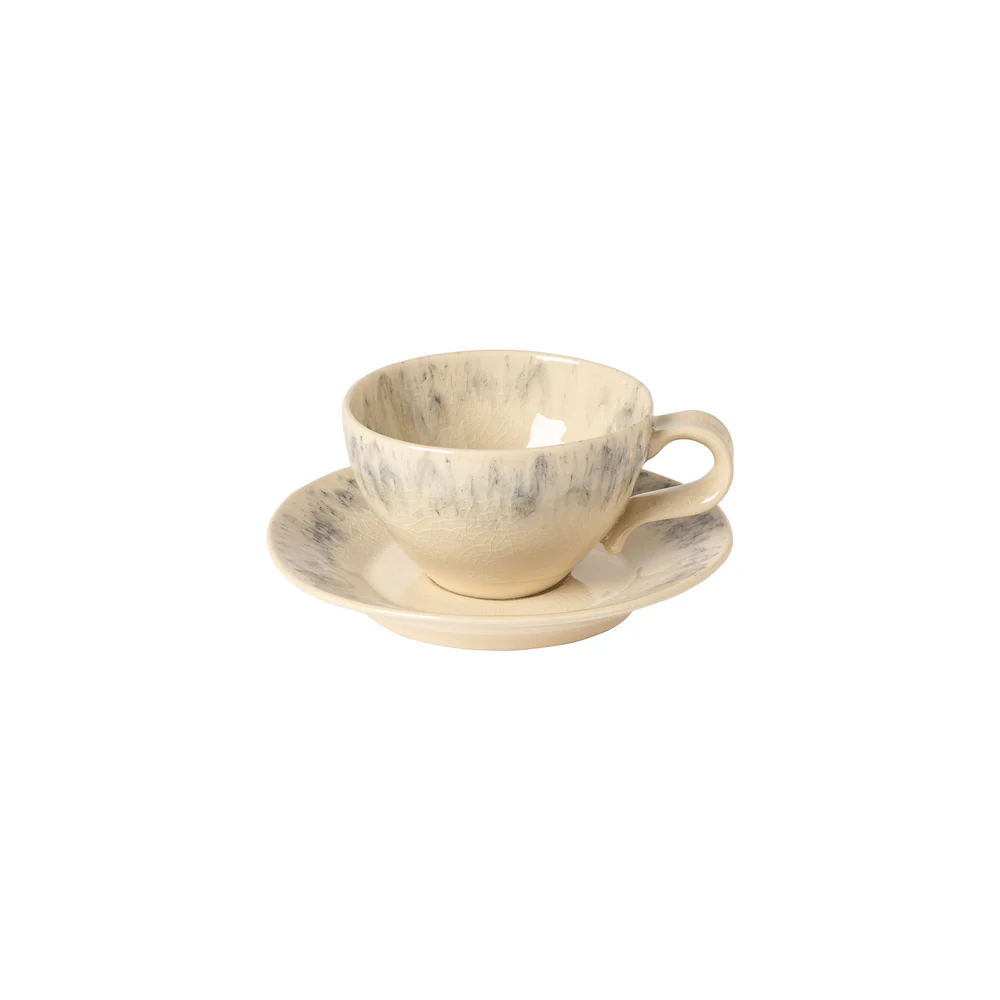 Madeira teekuppi ja lautanen on valmistettu hienosta kivitavarasta ja viimeistelty käsin. Luonnosta inspiraationsa saanut Madeira-mallisto esittelee lumoavan halkeilevan pinnan, joka muistuttaa auringonvaloa, joka suodattuu lehtien läpi.