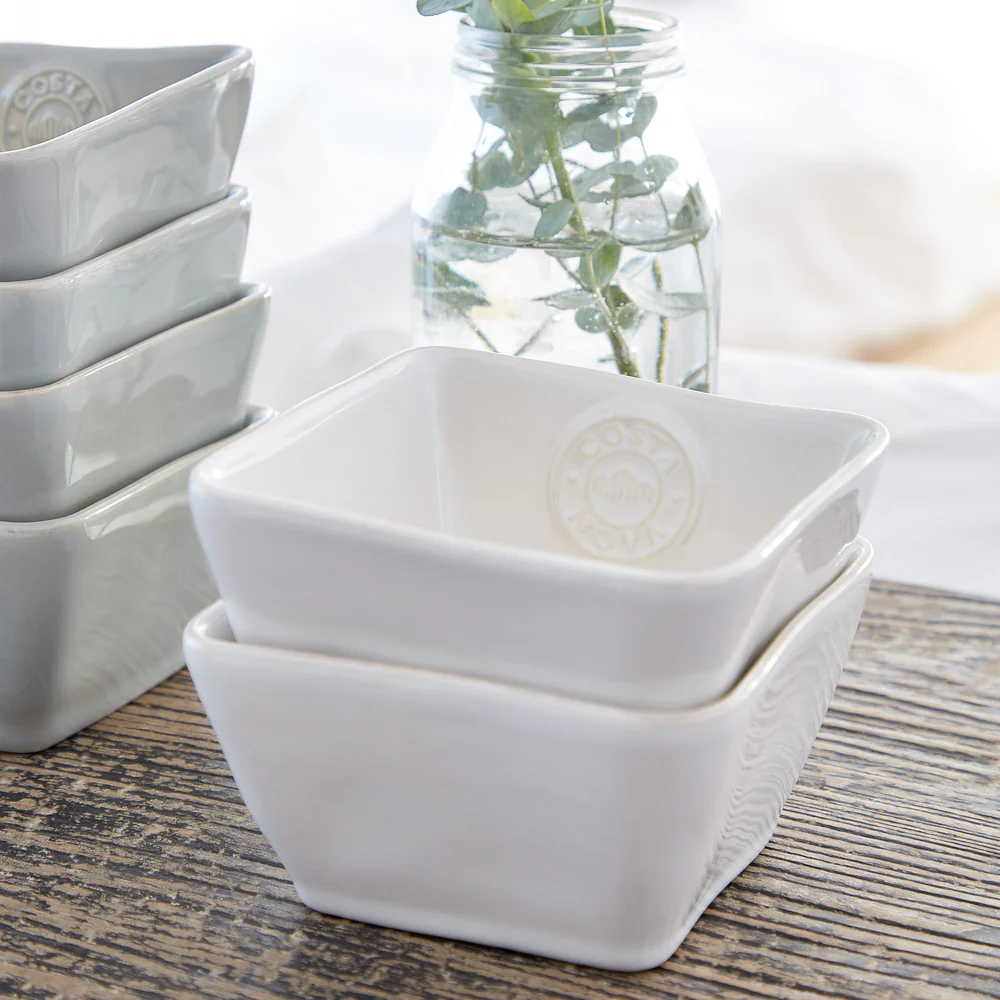 Neliönmuotoinen kulho on osa COSTA NOVAn ikonista kokoelmaa, joka esittelee orgaanisia linjoja ja hienoa kivitavaratyötä. Jokaisessa kappaleessa on läpikuultavia lasitteita, jotka korostavat tunteellista brändisymbolia kohokuvioin ja varmistavat ainutlaatuisuuden.