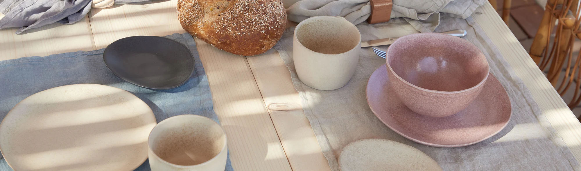 Elegantti Livia edustaa modernia lähestymistapaa ruokailuvälineisiin. Jokaisella esineellä on orgaaninen ulkonäkö ja tuntuma kahden kontrastisen lasitteen ansiosta – kiiltävän (valkoinen) ja mattapintaisen reaktiivinen lasitteen (musta, malvanpunainen ja samppanja). Käsityönä tehty ja aistejamme inspiroimaan suunniteltu, tämä täydellinen kokoelma sisältää kaikki elementit